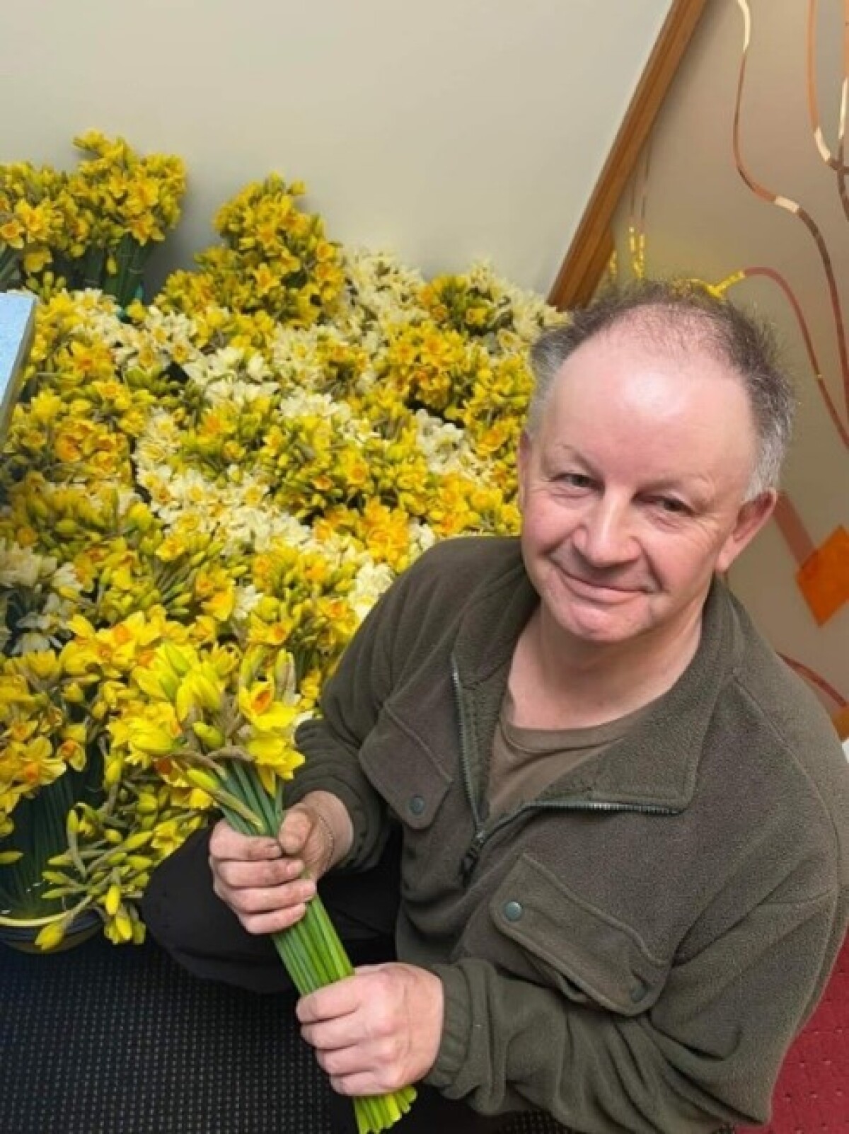 Scarlett’s favourite task is helping bunch the daffodils for sale on Daffodil Day.