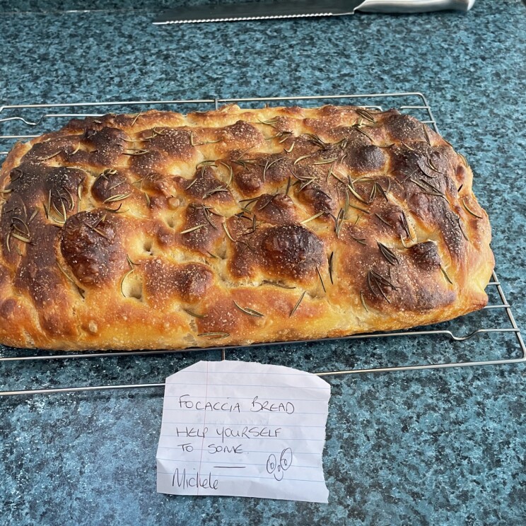 Over the three weeks, she’s often found herself with the other residents in the kitchen. She has baked sourdough loaves, focaccia, and fruit loaf, just to name a few. “There has been lots of recipes swapped along the way” she said.