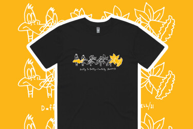 “Frizzell agreed to give it a go and ‘see if inspiration struck’, and to our great joy it did. We suspect this will be our most popular t-shirt yet.”