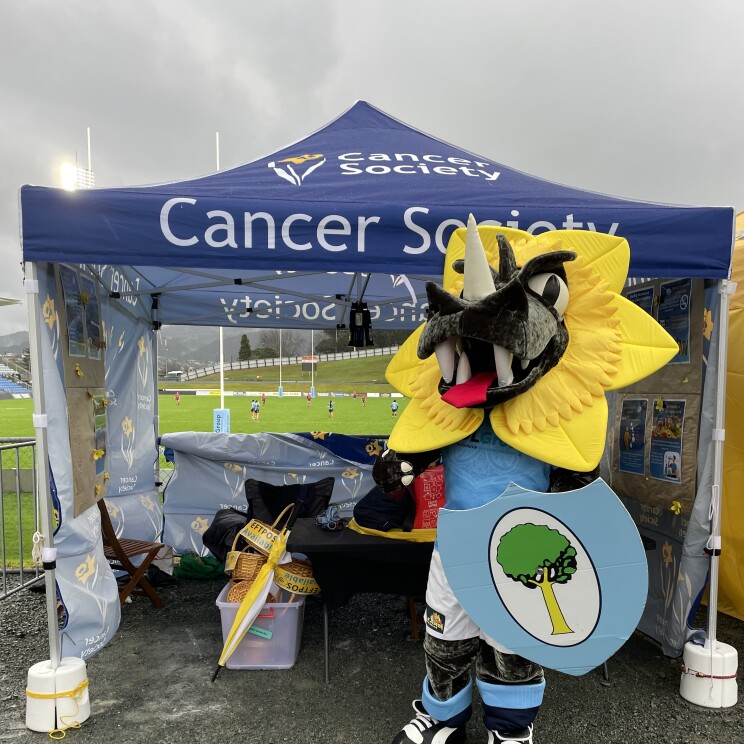 “Northland Rugby’s mascot, Tane the Taniwha, has had his costumer make a daffodil headdress for him to wear at Northland teams’ August matches. We can’t wait to see him run out onto the field.”