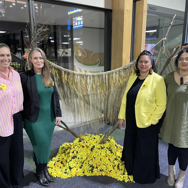 Further down the country Daffodil Day activities include the creation of an art installation on display at Tauranga Airport of a 2m-wide flax pākē (protective cloak). Entitled “He Pākē o te Aroha” A cloak of love, the piece symbolises the support offered by the Cancer Society as a strong strand weaving into the support network of someone facing a cancer journey.