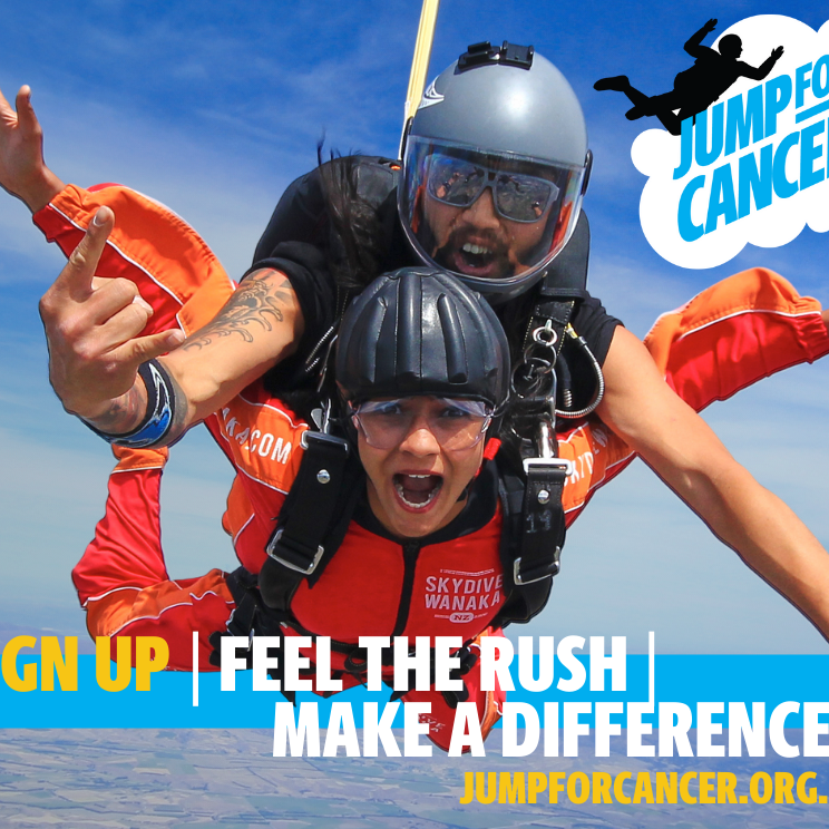 The Cancer Society invites courageous people to ‘Jump For Cancer’ to support the 1 in 3 people impacted by cancer. The skydive fundraiser will happen at Skydive Wanaka on Saturday, 14 May and at NZONE Skydive Queenstown on Saturday, 28 May where Cancer Society staff will be cheering on the brave jumpers. Skydivers can also arrange another time in May if these jump days do not suit.