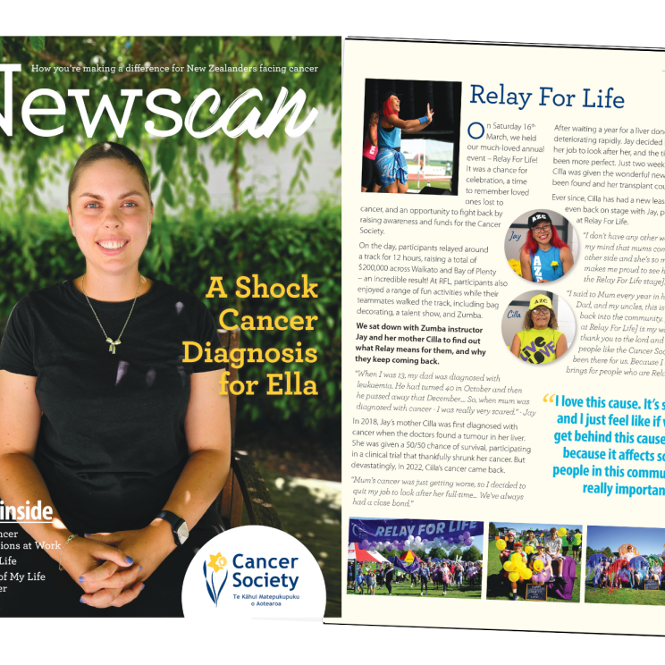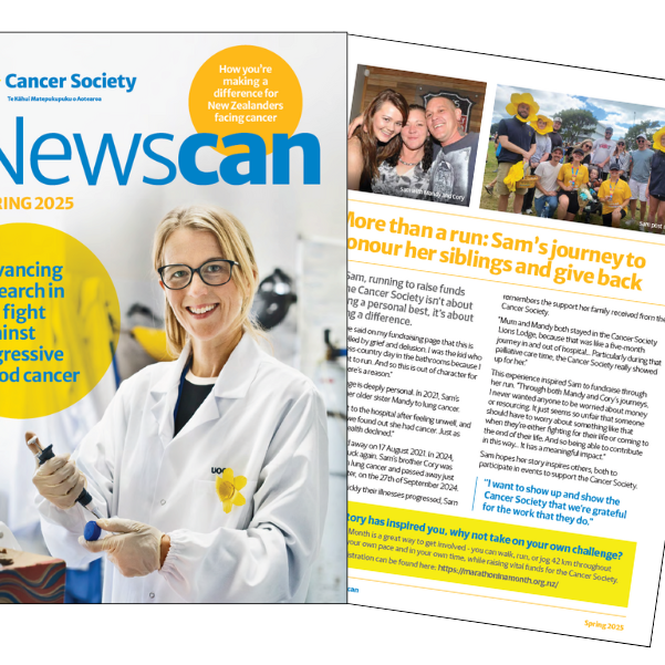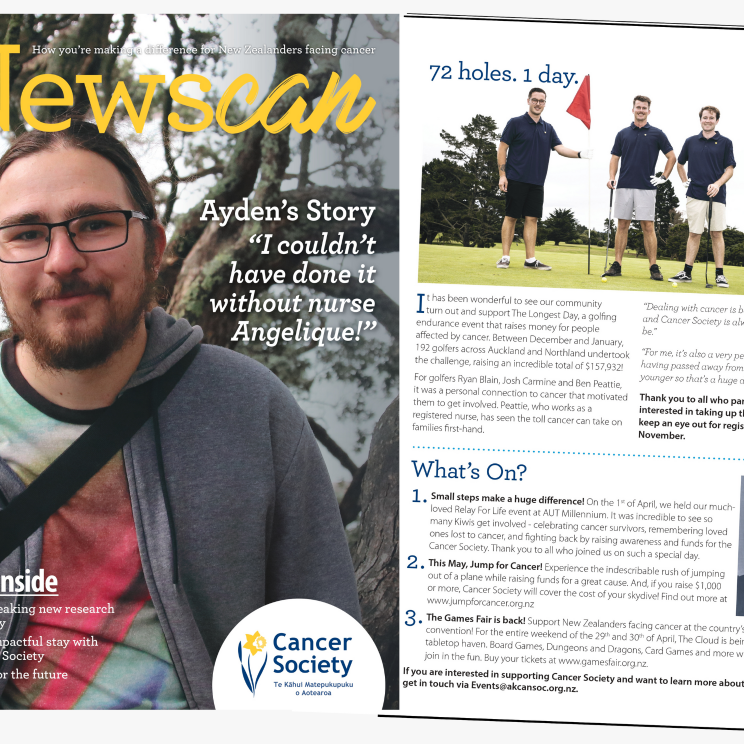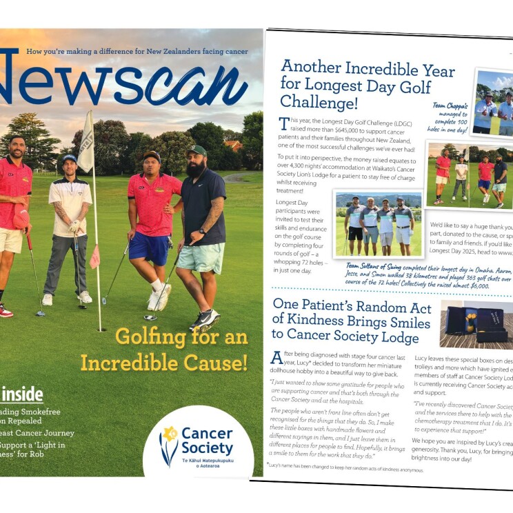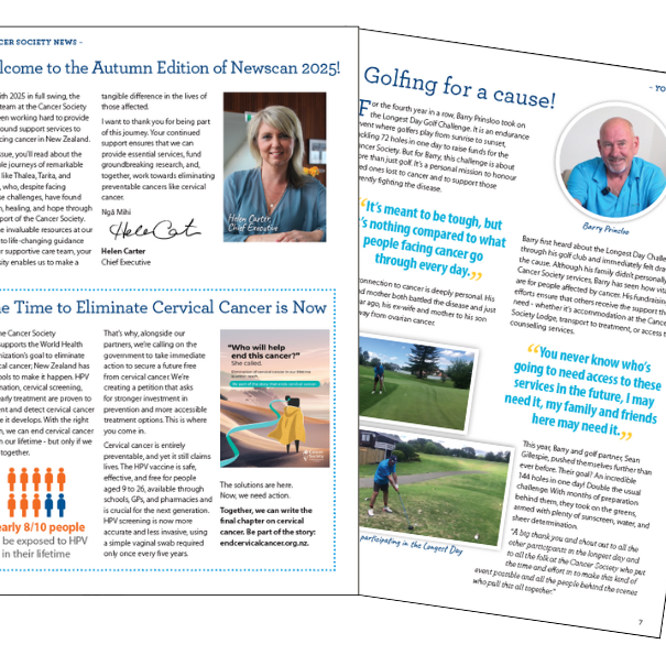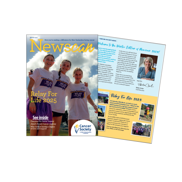 Newscan is a quarterly newsletter filled with inspiring stories from patients and supporters alike, updates on the latest research, and information about past and future Cancer Society events.